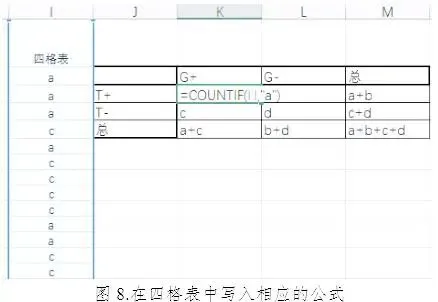 使用公式,将转换结果应用到四格表判定中,从而简化判定过程。输入“回车”后,该格子将显示出经过转换的四格表结果。