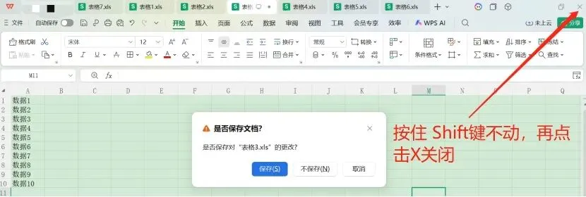 如需保存所有文档,则点击【保存】,无需保存,则点击【不保存】,便能一键关闭所有打开的文件,不用一一关闭。