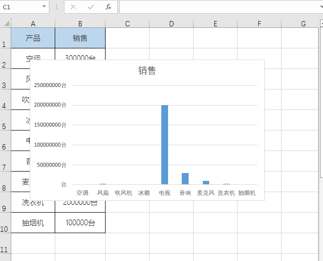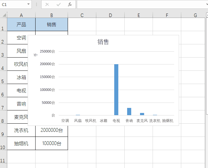在插入的图表中,其实我们还能改变坐标轴中的单位。