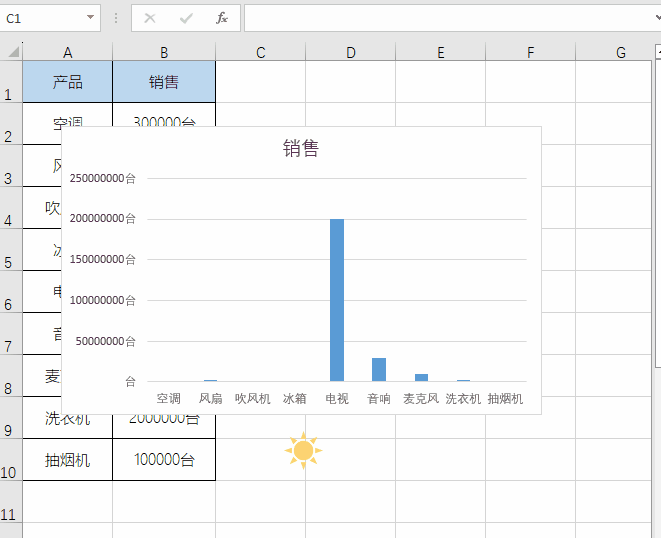 复制小太阳,点击图表中的柱形图,按下【Ctrl+V】粘贴;