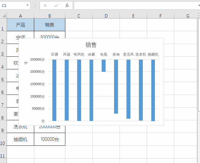 如果你觉得柱形图颜色太过单一,我们可以快速设置不同的颜色。