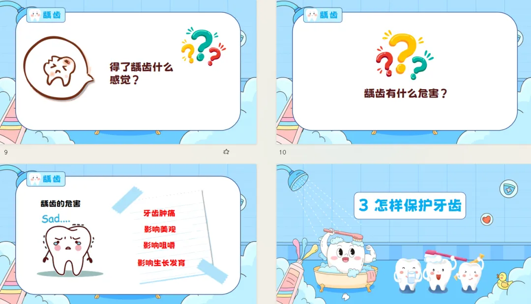 引导语: 牙齿很重要,如果不注意保护,牙齿也会生病,小朋友看看牙齿怎么了?得了龋齿什么感觉?