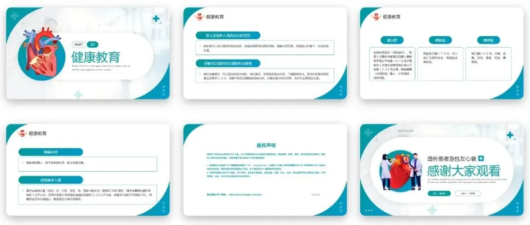 这款透析心衰护理全流程规范讲解PPT,按照护理工作的实际开展顺序,搭建了全流程的带教学习框架,从前期评估到应急处理,再到长效管理全覆盖。