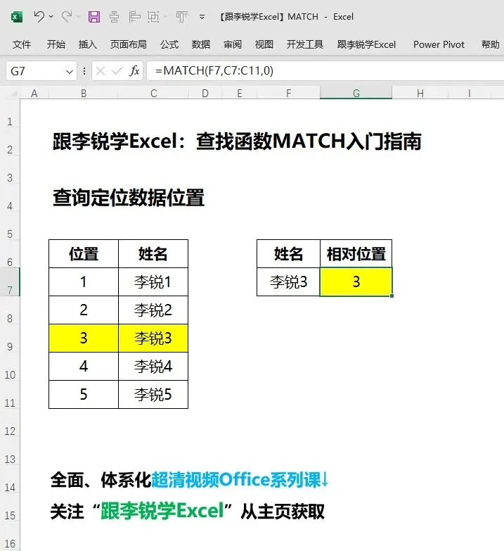 Excel查找函数MATCH函数,用于查询并返回查找值在区域中的相对位置。实际工作中多用于与其他函数组合,查找定位位置后传递给引用函数返回数据。