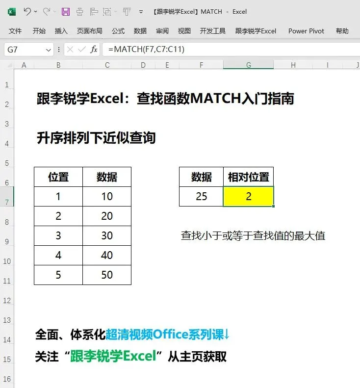 MATCH函数用于查询并返回查找值在区域中的相对位置。实际工作中多用于与其他函数组合,查找定位位置后传递给引用函数返回数据。