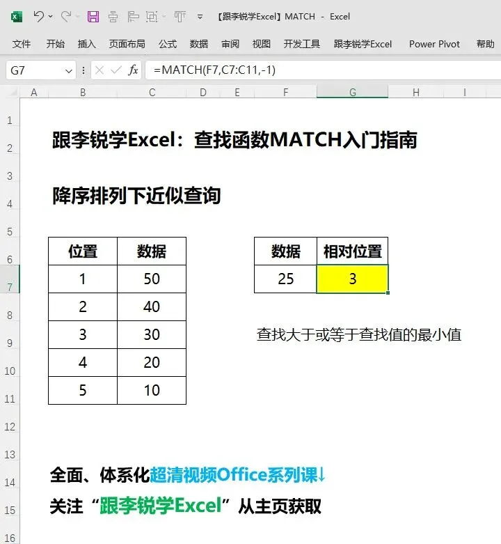 -1,查找大于或等于查找值的最小值。要求查找区域以降序排序