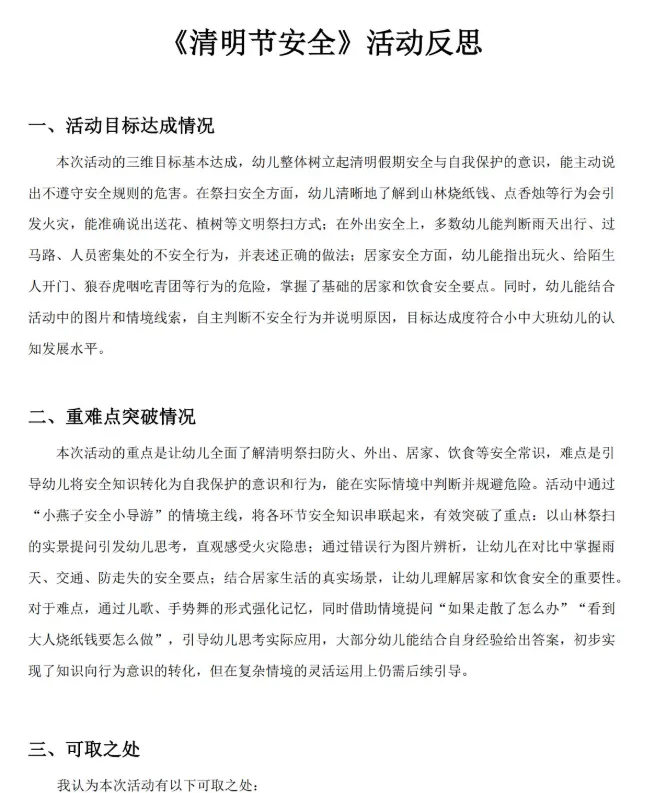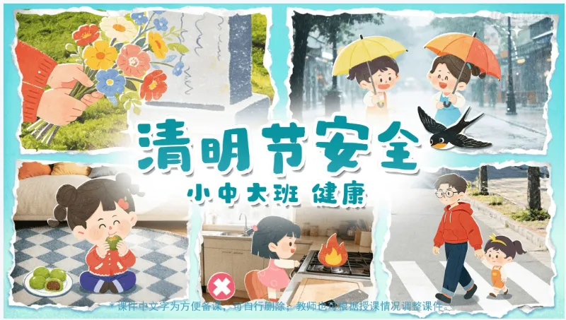 幼儿园小 中 大班——《清明节安全》ppt+教案+活动反思+律动视频分享