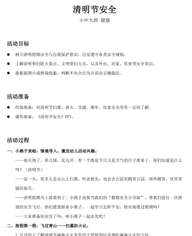 >幼儿园小 中 大班——《清明节安全》ppt+教案+活动反思+律动视频分享