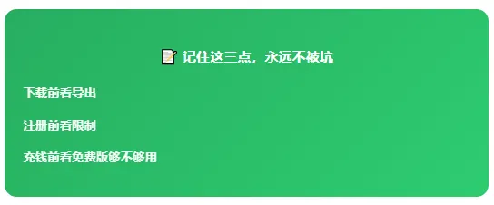 识别方法:下载前看"导出格式",如果只有"免费试用30天"或导出功能被禁用,果断放弃。
