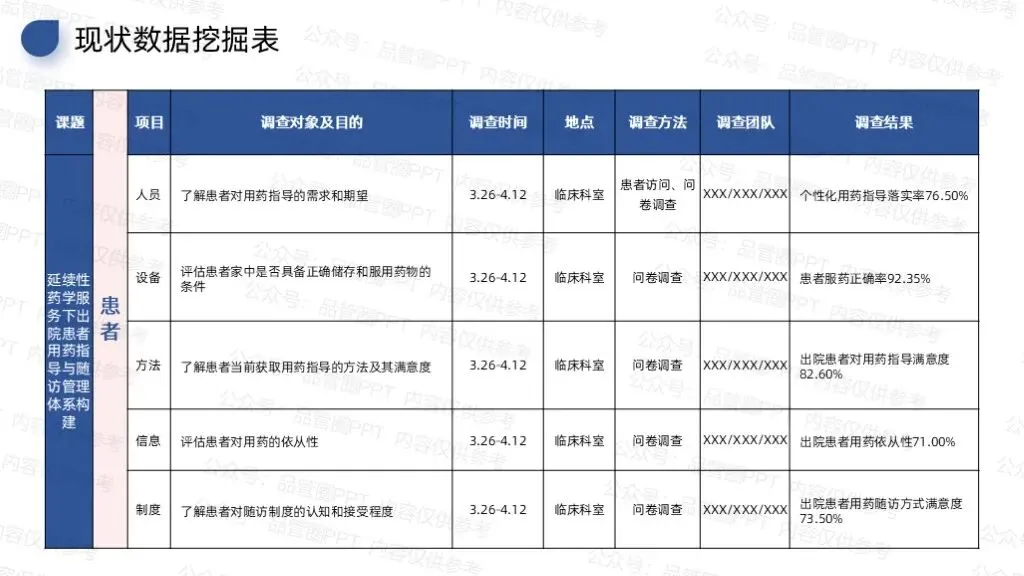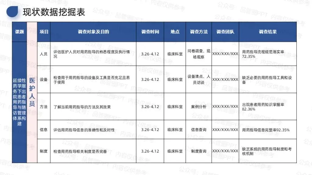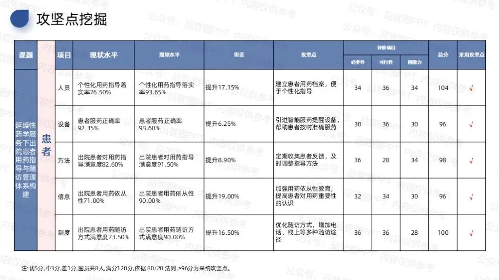 制定甘特图,明确各阶段任务与时间节点,确保项目高效实施。开展现状数据挖掘,精准定位出院患者用药指导与随访管理体系现存问题与潜在需求。对目前存在的问题进行攻坚点挖掘。