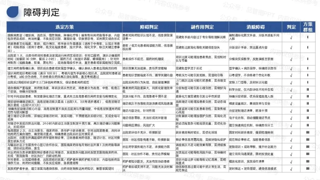 对各项方策进行障碍判定,找出消除障碍的方法。