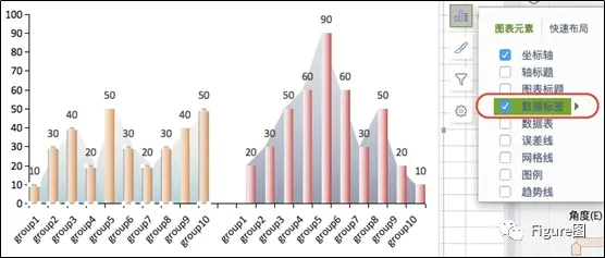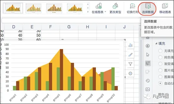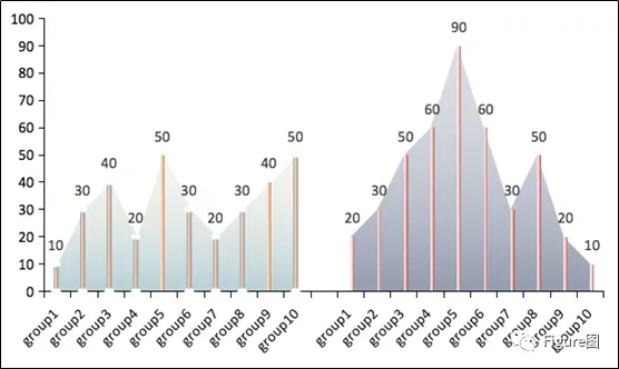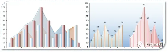 23. 当将柱形图调整极细形式后看起来便会是柱形图和向面积图合而为一的效果。