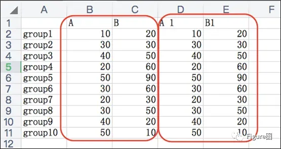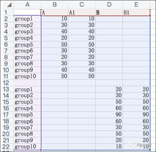 16. 如果我们不想四个系列用两两形式展示,我们先将数据格式调整如下: