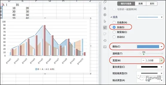 11. 为了面积图也显示出折线图的效果,可将其线条予以调整。
