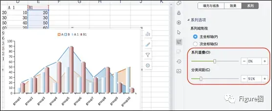 13.说到这儿,咱们别忘了簇状柱形图还可以在“系列”处调整其系列重叠和分类间距。