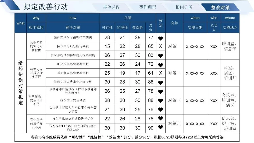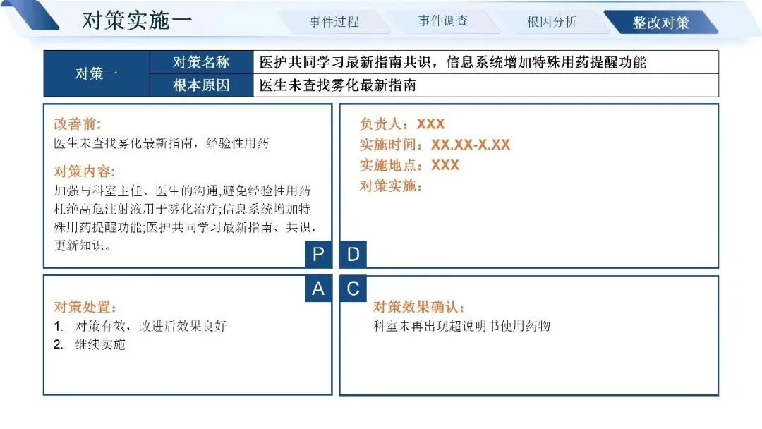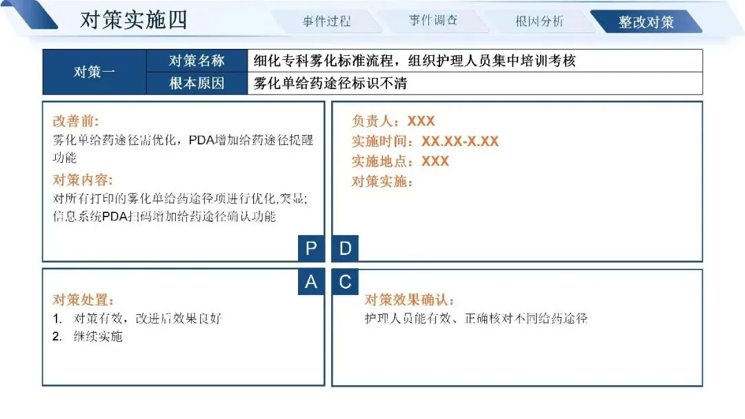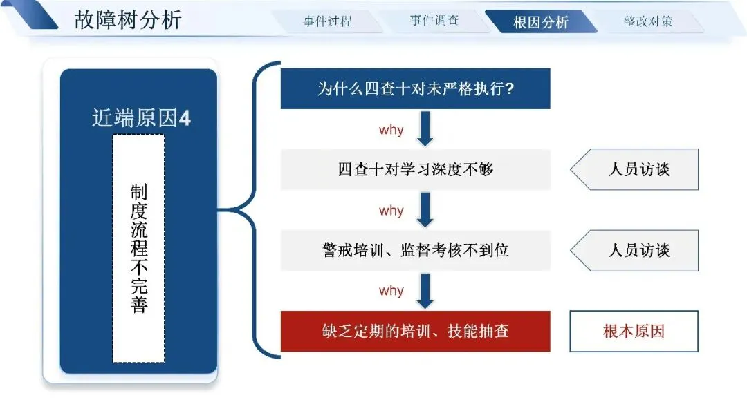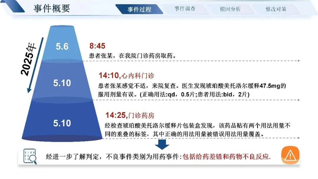 通过层层追溯,我们找到了问题的近端原因:标签书写粘贴不规范,四查十对制度未严格执行,药师未做好用药交代,患者也缺乏有效的用药指导途径。深挖根本原因,核心还是制度流程不完善、发药系统老旧、药师培训考核不到位、门诊环境工作量大等多重因素叠加。