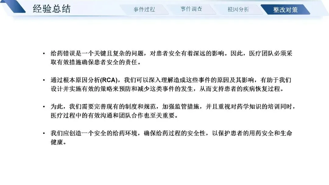 给药错误无小事,每一次不良事件都是一次警示。通过 RCA 根因分析,找到问题的核心症结,从制度、系统、人员、环境多方面整改,才能真正筑牢用药安全的防线,守护患者的生命健康。