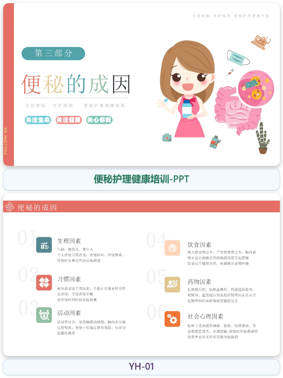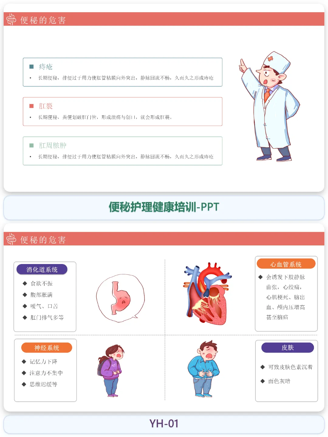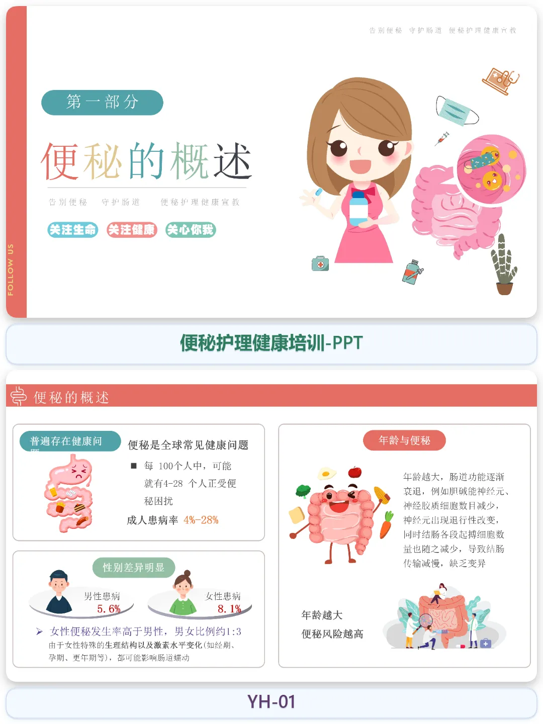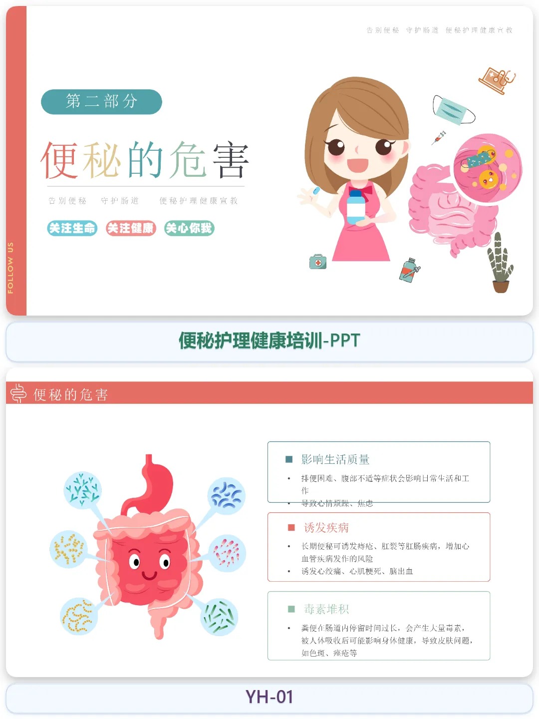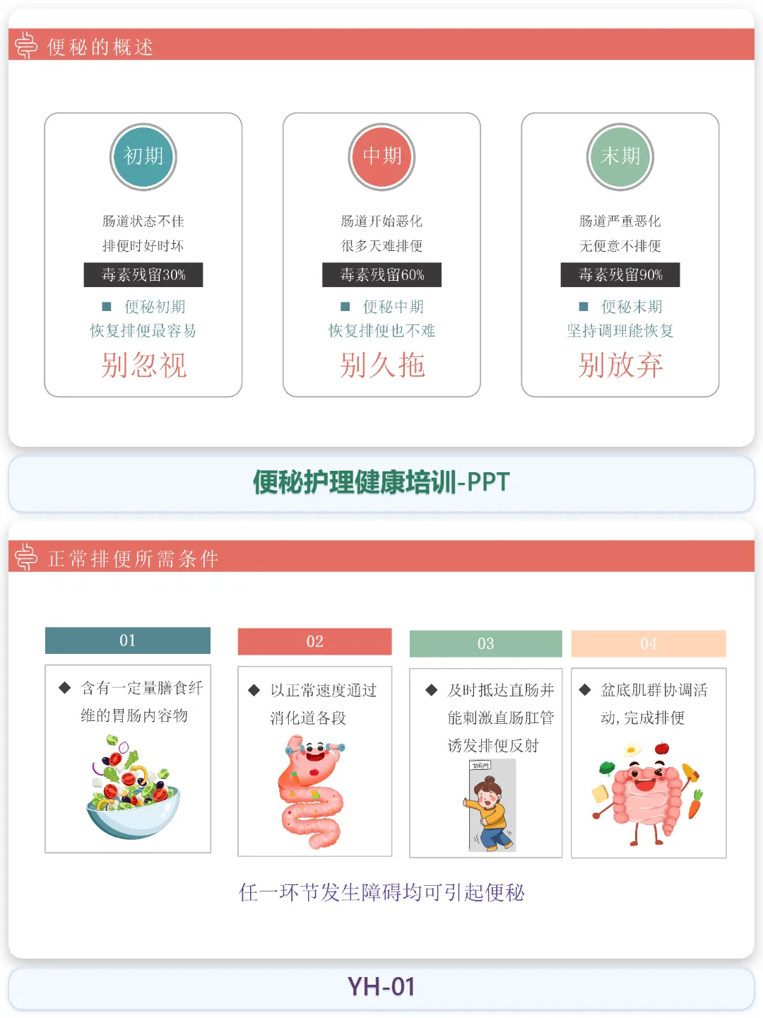 这份医护专属PPT,直接套用,省心高效,贴合临床工作需求。✅ PPT主题便秘护理健康培训:科学养护肠道,告别排便难题✅ 适用人群临床医护人员、规培实习生、科室宣教及管理相关人员✅ 核心亮点1. 专业合规:紧扣临床规范与诊疗指南,内容严谨,贴合工作实际2. 逻辑清晰:框架规整,重点突出,图文搭配易懂,讲解展示更顺畅3. 版式简约:医疗风简约排版,无花哨设计,投屏打印都合适4. 可编辑修改:全套可微调,适配多场景,灵活复用📸 内页节选展示
