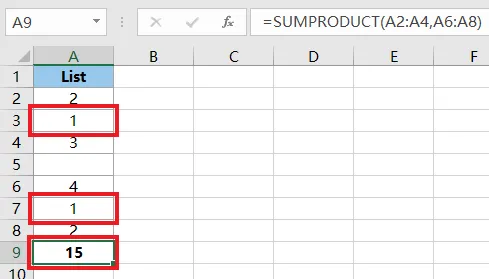 如果还不信,可以验证一下,在 A3 和 A7 中输入 1,结果就变成了 15,=2*4+1*1+3*2,坐实了 sumproduct 跟大多数函数一样,是把空格当 0 处理的。