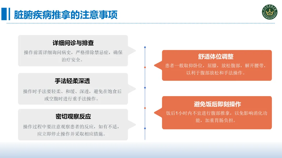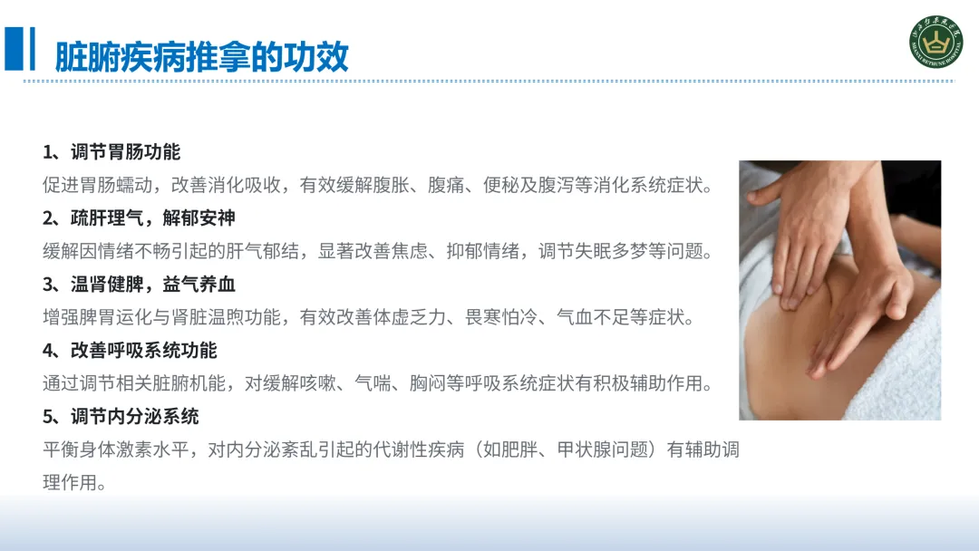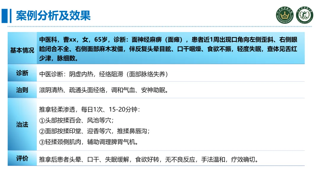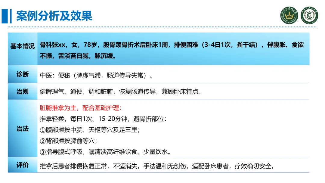 现代医院的护理服务越来越追求精准、全面、高效和舒适,而中医适宜技术中的推拿技术无创伤、无药物介入,正好契合了患者的一个需求,这也是全院推广推拿技术的一个重要背景。