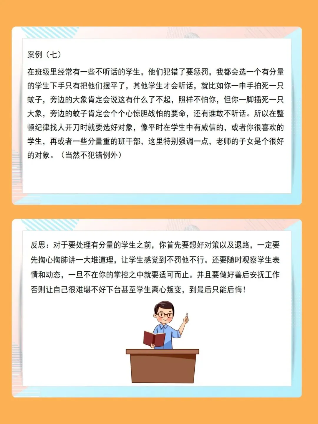 本文通过九则真实生动的教育案例,讲述一位资深班主任在班级管理中的实践探索与深度反思。从面对学生上网成瘾的柔性处理,到化解师生课堂冲突的智慧退让;从处理班级失窃事件的集体教育,到"杀鸡儆猴"的纪律整顿策略——这些案例涵盖了师生关系构建、突发事件应对、班级文化建设、教育时机把握等核心议题。