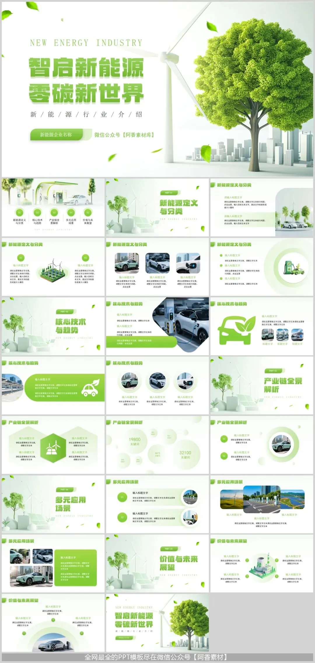 随着全球能源结构加速转型,新能源行业正迎来前所未有的发展机遇。一份专业、视觉吸引力强的新能源PPT模板成为企业展示技术实力、传递品牌价值的关键工具。从阳光电源到光伏等头部新能源企业,都高度重视演示设计在市场开拓中的作用。优秀的新能源PPT模板不仅能够清晰呈现复杂的技术原理,如芯片、光伏、地热能、电力、新能源的管理等,还能通过精心设计的绿色、科技风格,体现行业特质与品牌调性,助力企业在能源革命的浪潮中脱颖而出。