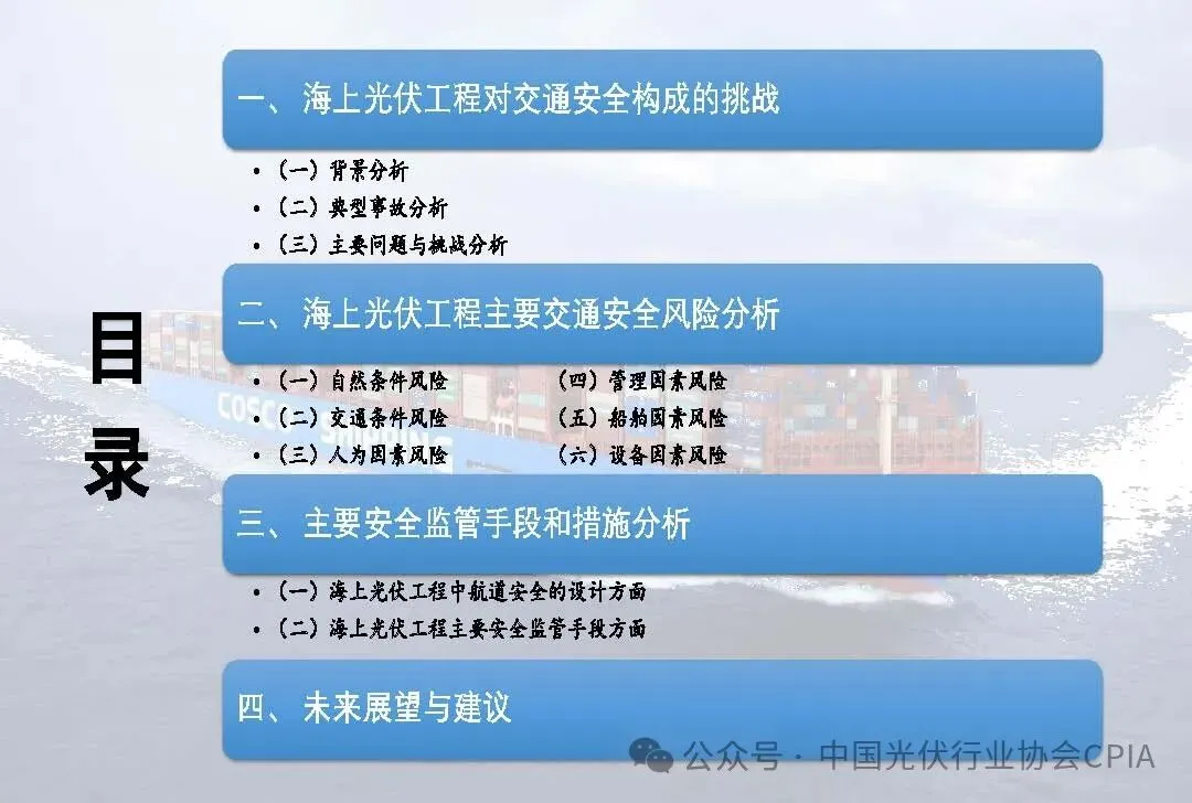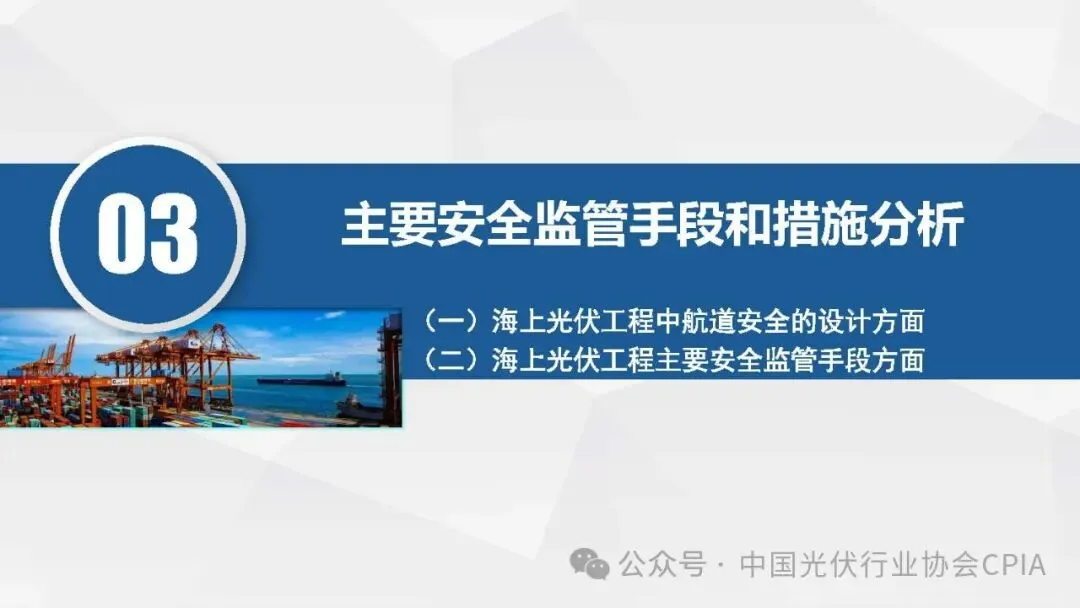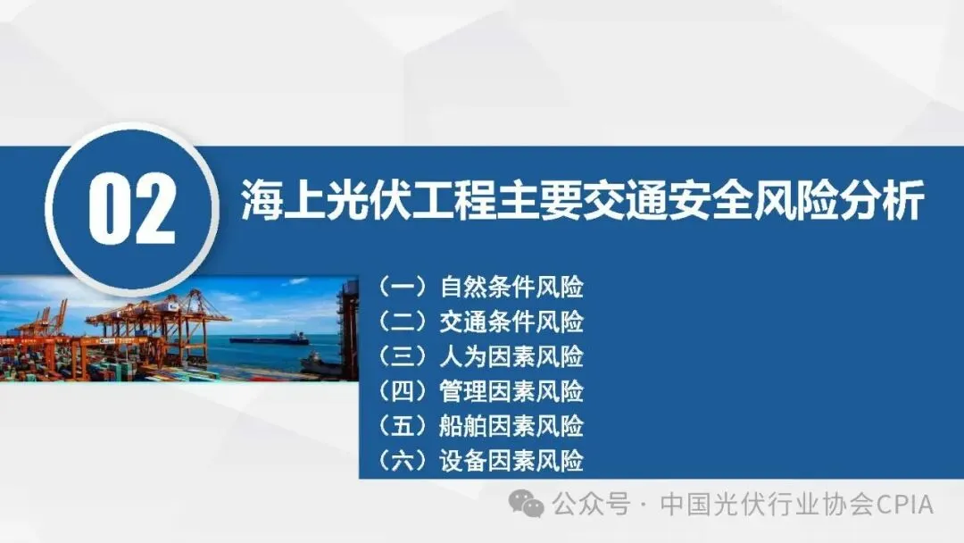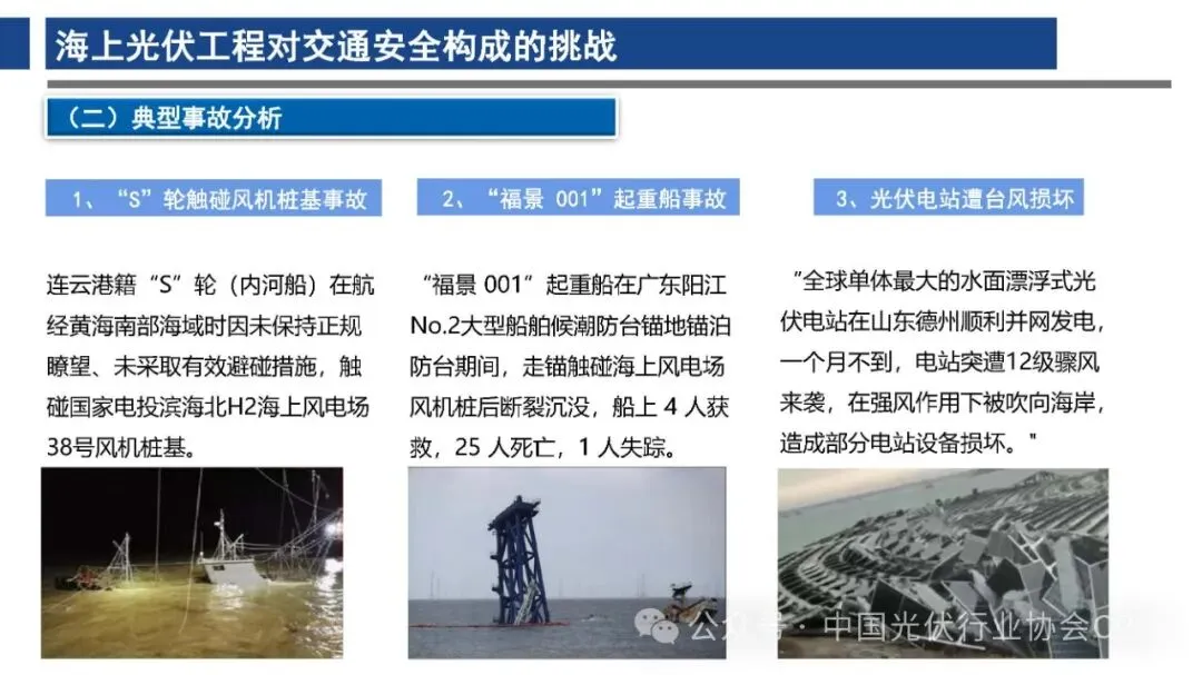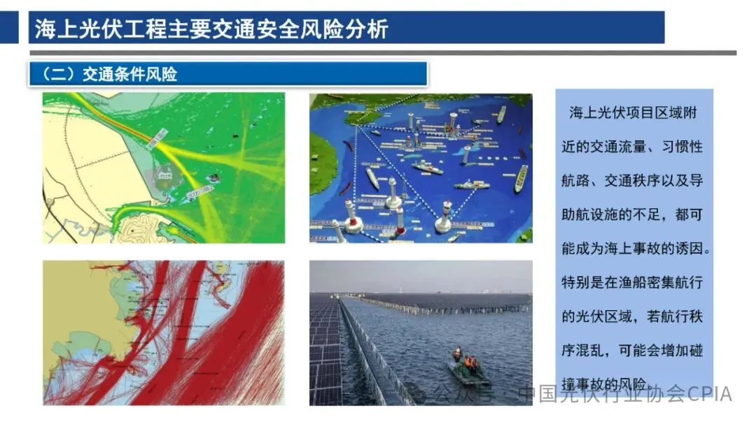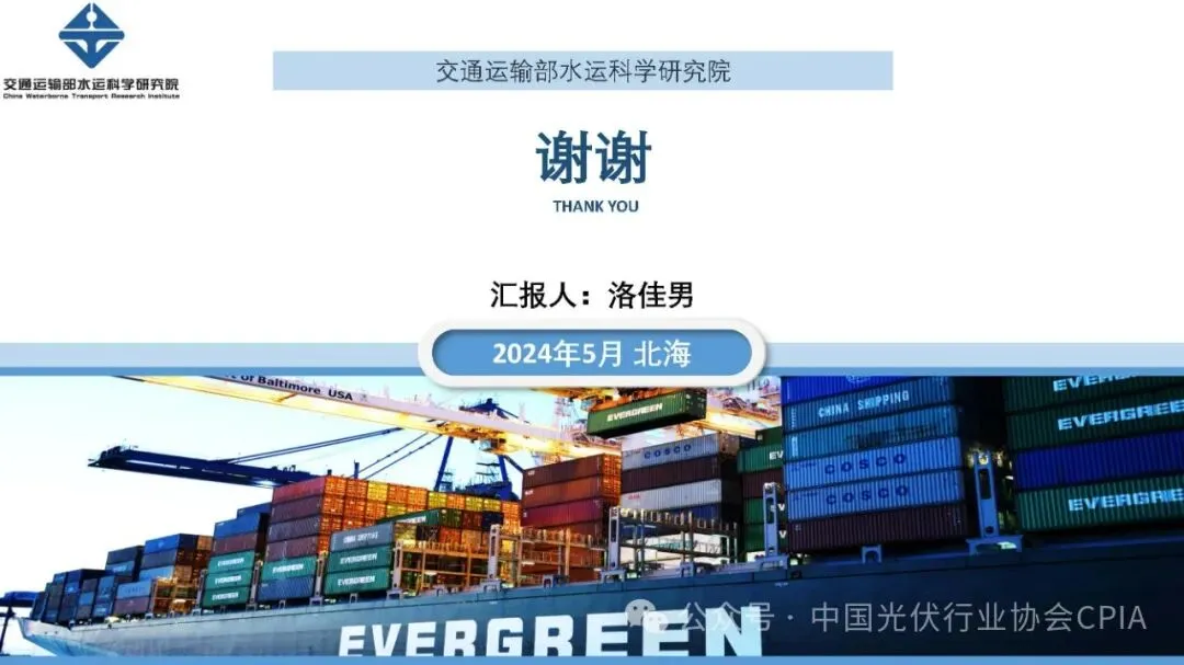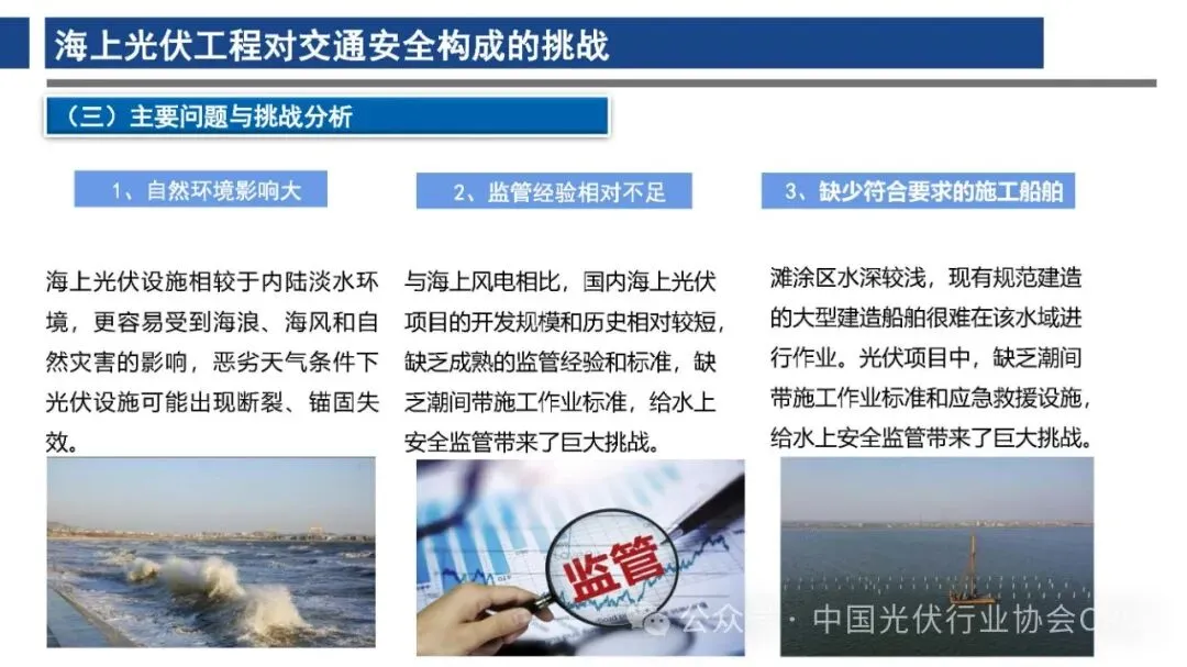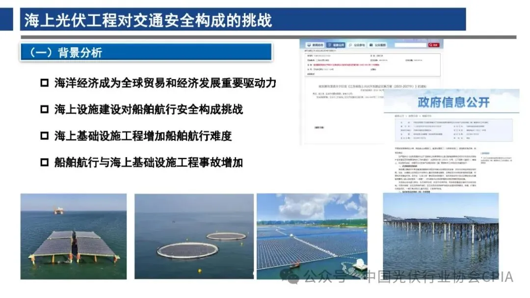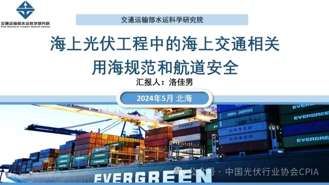 2024年5月15日,由中国光伏行业协会与北海市人民政府联合主办的“2024海上光伏产业发展论坛”在广西北海富丽华酒店成功举办。交通运输部水运科学研究所智能航运中心技术装备室主任洛佳男对海上光伏工程中的海上交通相关用海规范和航道安全进行了讲解,洛佳男主任对海上光伏工程从交通安全构成的挑战、海上光伏工程主要交通安全风险分析、主要安全监管手段和措施分析等几个方面进行了分享,希望未来能与各位同仁一起探索推进海上光伏工程建设。