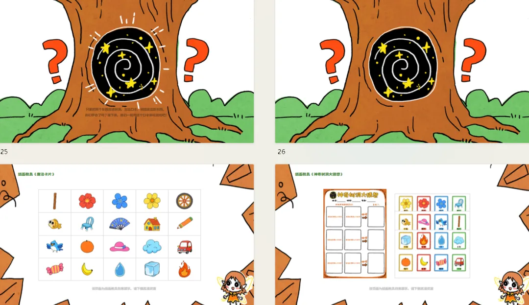 l纸面教具:《魔法卡片》《神奇树洞大猜想》。