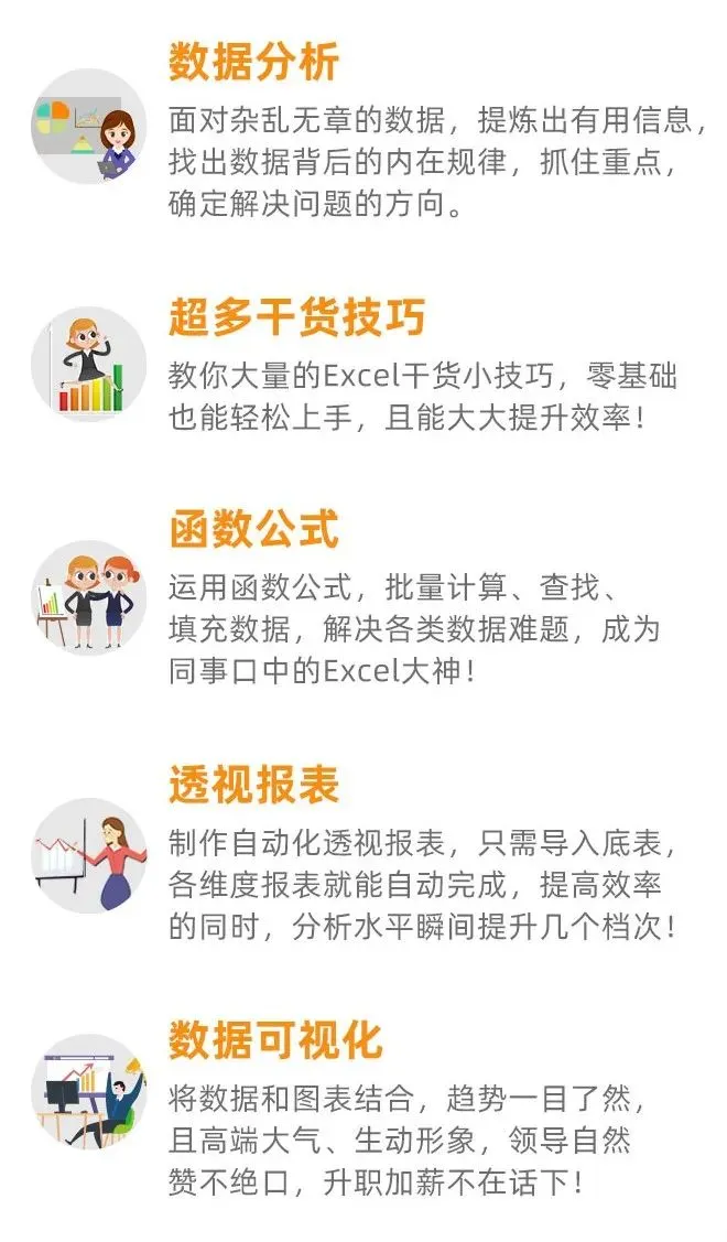 前段时间,接到朋友的电话,她告诉我:前段时间部门主管的位置空缺,她想争取一把,不料,却被实习生当头棒喝。审核投标信息单录制凭证时,她打开七八个窗口,不停录入信息,一整个下午都在填写重复的项目清单。汇总各个项目的预算金额以及人员工资支出明细时,她一栏一栏复制粘贴。没想到,第二天开月度总结会,部门实习生的各项工作指标完成得都比朋友的好:不仅数据全面,对比清晰,还有图表作为直观的展示。看到实习生的汇报,朋友像个泄了气的皮球:“在公司待了3年,现在却不如一个实习生,你说这叫什么事啊?”以旁观者的角度,我建议她主动去请教一下实习生工作的“秘诀”。没想到,实习生告诉她,自己工作上很多问题都是用 Excel 来处理的,又快又方便,还能降低数据的出错率——Excel???没想到是自己以前瞧不起的Excel。“是呀,Excel 不仅是一个处理数据的工具,还能帮自己建立数据思维!“用Vlookup函数,可以快速核对数据,并且在多个表格之间快速导入数据,简单点几下,就能让它们更新数据,大大节省时间~用Excel做出的数据透视表,一张表就能体现多个表、多个来源的信息,不仅简单、方便,更能够轻松展现你的高水平业务能力。用Excel做动态数据看板,形成多种可视化图表,让数据一目了然,更容易从数据中发现问题,找到业务突破口。而且,大公司都是用各种数据看板推进业务,尤其是涉及到销售、财务、资源盘点、人员调动等等业务。一个数据看板,顶得上十几张表格!连周报、月报,她也用Excel实现自动更新,每次更新几个数字就OK,超方便~如果你是领导,看到这样的图表,是不是觉得这样的员工很给力?二来数据分析能力强,能把复杂问题简化成容易理解的图表,抓住问题的重点和关键。朋友顿时对实习生改观了,也意识到:职场只看能力,不看资历。你不进步,就等着被别人超越,这就是事实。但站在长远角度上看,如果你永远只顾着自己忙,不懂得借助工具帮自己提升时间价值,那就意味着,你永远无法突破现在的瓶颈。毕竟,“对于很多工程师来说,学会万能的Excel,足够搞定80%的问题!”去报班:不仅浪费很多时间精力,还花了一大笔冤枉钱[图片]找视频:几集枯燥无趣的课程下来,脑子里一片浆糊,还是不懂怎么实操运用[图片]今天给大家推荐秒可职场《4天Excel速学课》,报名超火爆,已经有超百万学员!课程总结了几百位一线大厂精英的Excel技术精华,从质量工程师常用功能出发,帮你提高工作效率,真正成为时下抢手的数据分析人才。课程提炼出精华、核心的知识和技能,帮助你用更省力的方式抵达学习目标。教你Excel的底层逻辑、思考方式和设计规则,帮助你逐步建立数据思维,在此基础上,助你升职加薪。