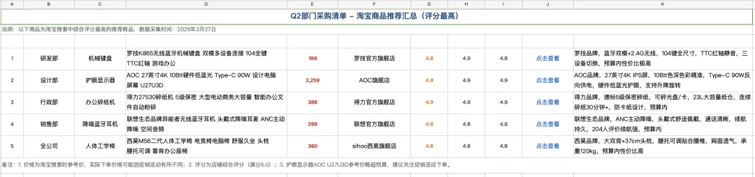 并回复:去淘宝逐查找这些商品,找出评分最高的商品,并记录对应的商品链接到Excel中,最后所有查找完成后发送汇总的Excel给我: