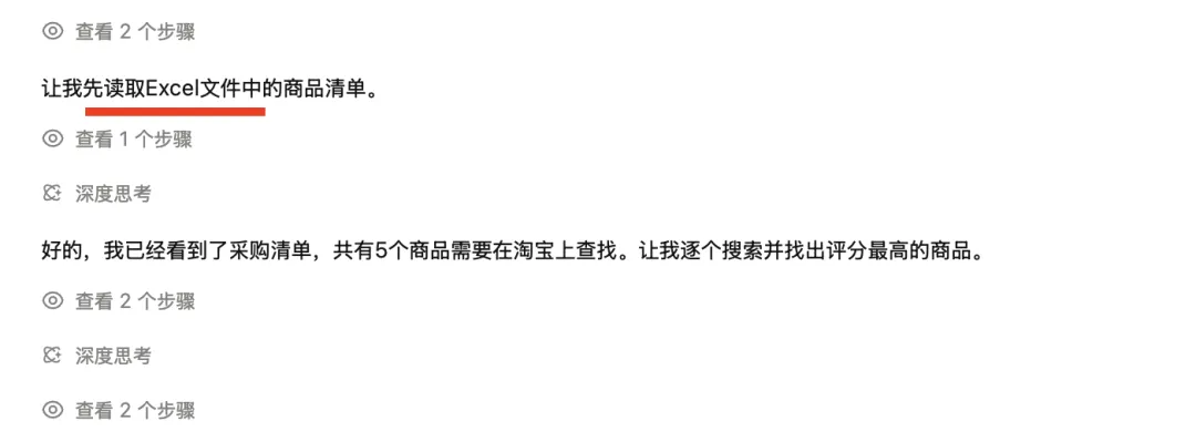 接下来就是文章开头那个任务,QoderWork自动干活的中间截图,如下先读取Excel文件: