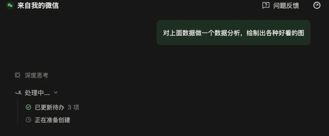 整个活就这样完成了。看来以后我们只要往微信里发文件和一句话指令,它就会在后台乖乖读写操作我们的文件,帮你跑数据,整个活就这样完成了。这对新手来说非常友好,没有任何复杂的环境依赖。