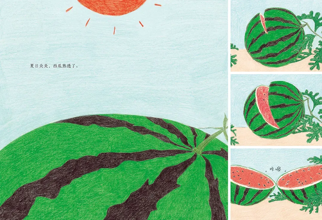 这是一次奇妙而欢快的夏日之旅!作者巧妙地将消暑的西瓜与欢快的游泳场融为一体,想象力如天马行空。孩子们踩在西瓜上,那沙沙的声音仿佛就在耳畔,让我们仿佛也置身其中,心驰神往。绘本的画风清新治愈,色彩明快如多巴胺般激发活力,让人迫不及待地想要品尝一口甜美的西瓜。在这幅画卷中,老人和孩子们欢聚一堂,无忧无虑的笑声汇成一首夏日的赞歌。他们的笑容如同夏日的阳光,温暖而耀眼,给孩子们的童年留下了一抹难忘的色彩。而那份奇妙的想象力,更是为孩子们的梦想插上了彩色的翅膀,让他们在快乐中自由翱翔。夏日炎炎,西瓜熟透了。
