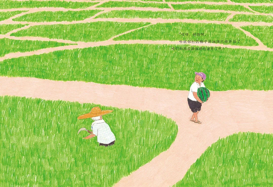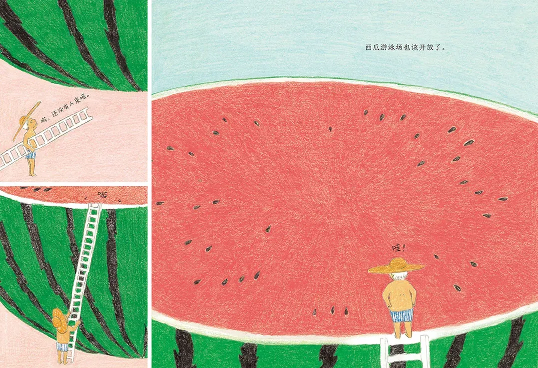 西瓜游泳场也该开放了。“哇”老爷爷看着还没开放的西瓜游泳场发出了惊叹。西瓜太好了,籽少游起来一定很舒服。