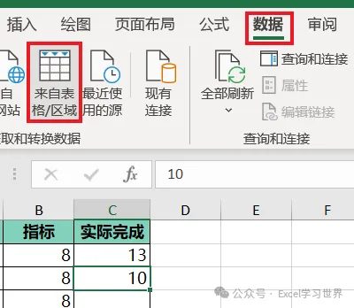 1. 选中数据表的任意单元格 --> 选择菜单栏的“数据”-->“来自表格/区域”