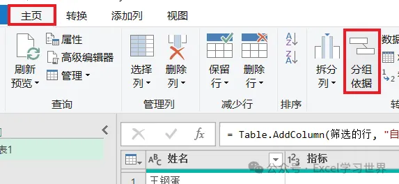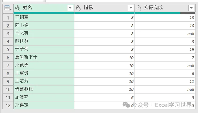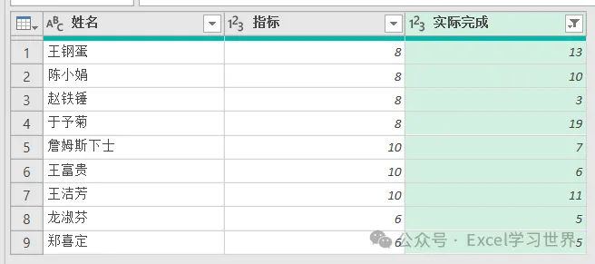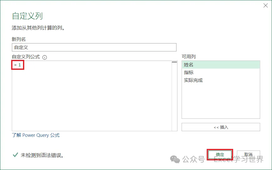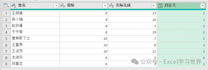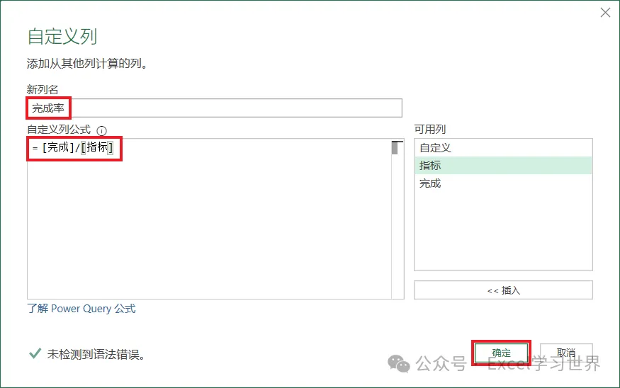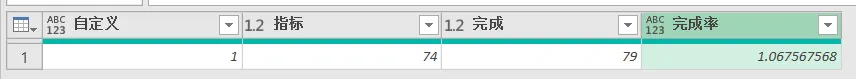 自定义列公式:输入 =[完成]/[指标]