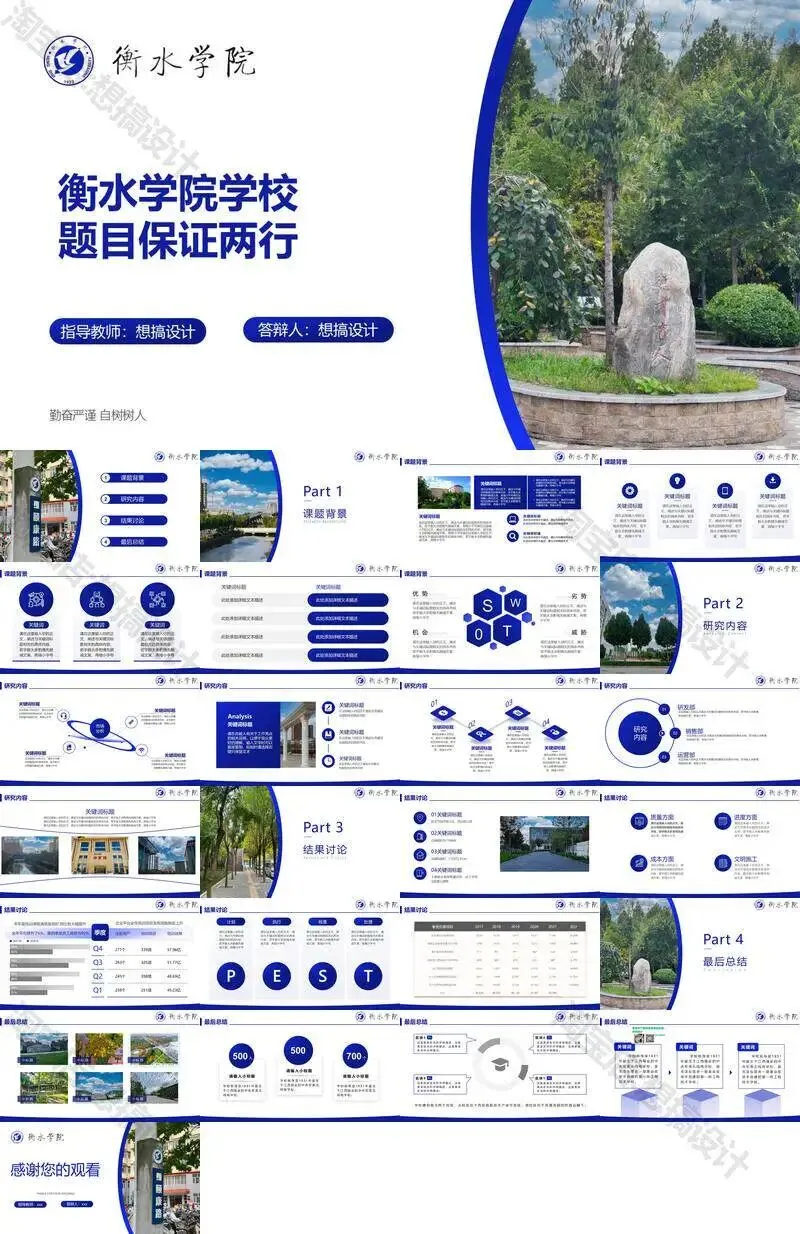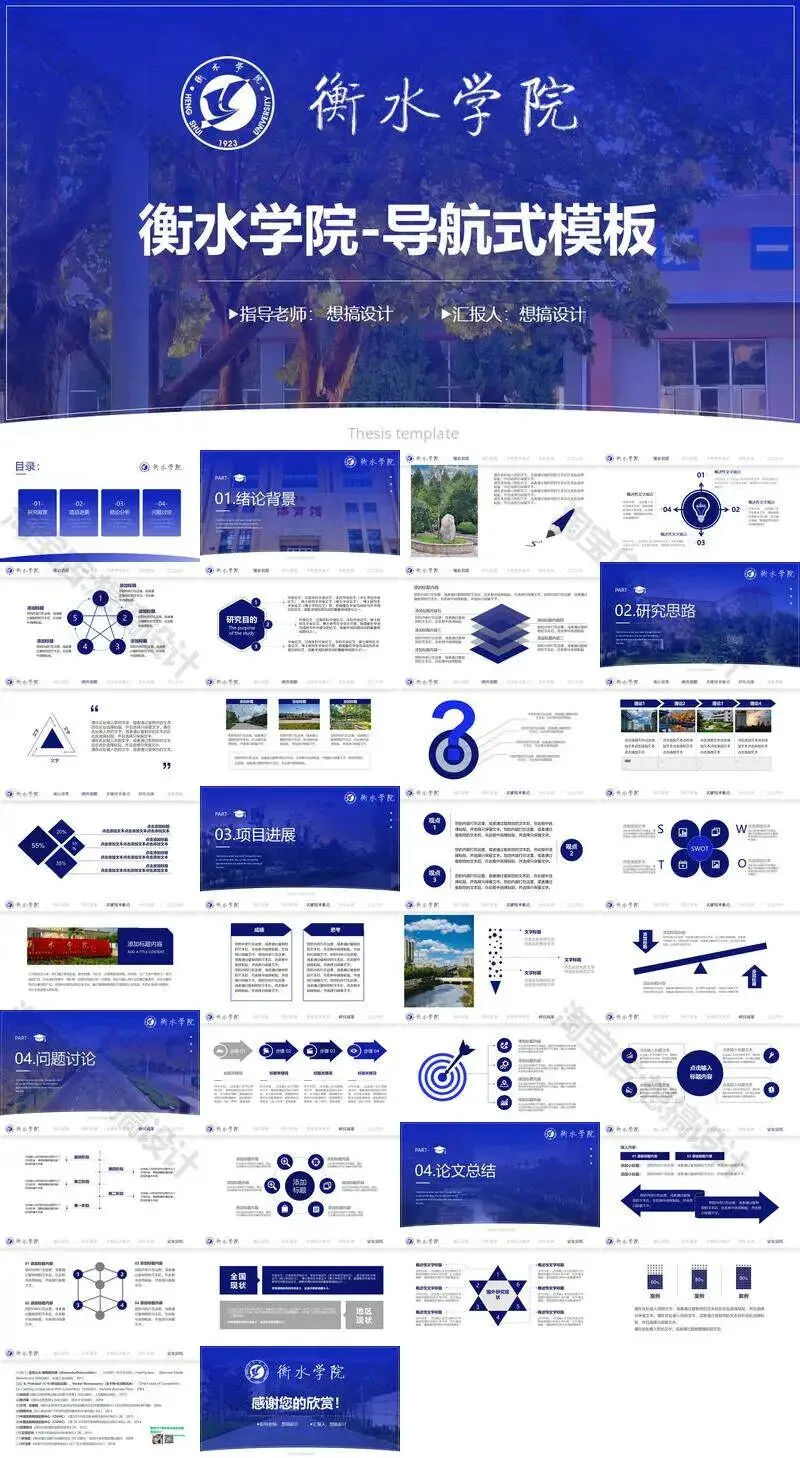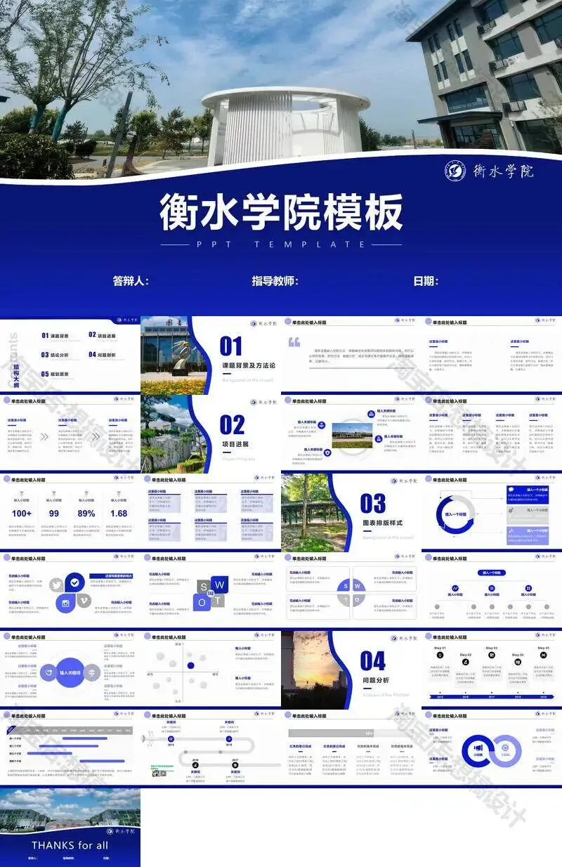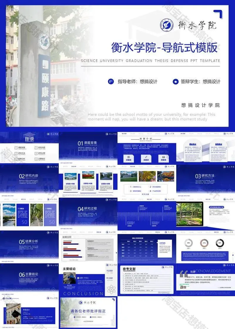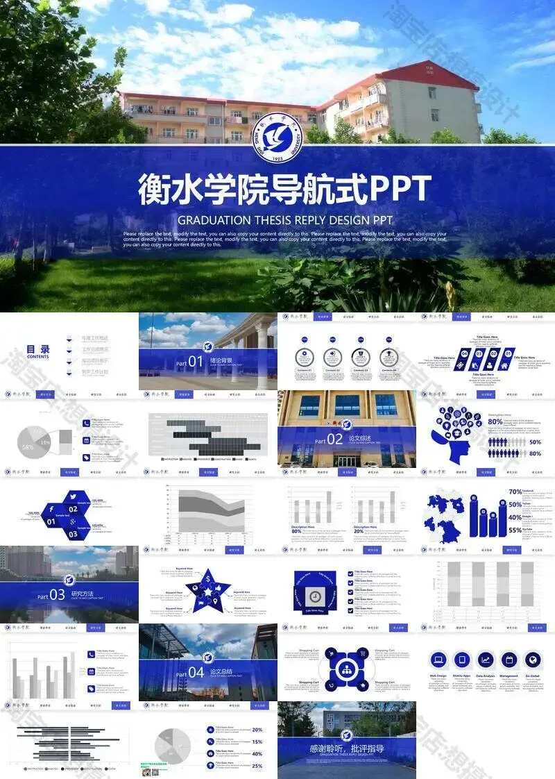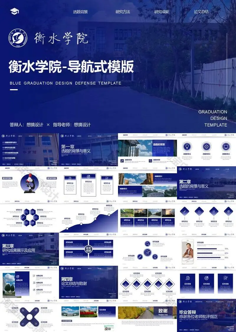 衡水学院毕业答辩PPT模板汇报幻灯片课件总结大学生作品集