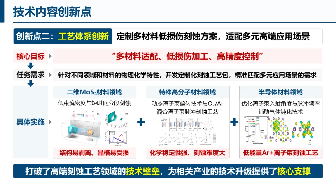 - 工艺体系创新:以“多材料适配、低损伤加工、高精度控制”为核心,针对半导体、特殊高分子、二维MoS₂等不同材料特性,开发定制化刻蚀工艺包,适配多元高端应用场景。