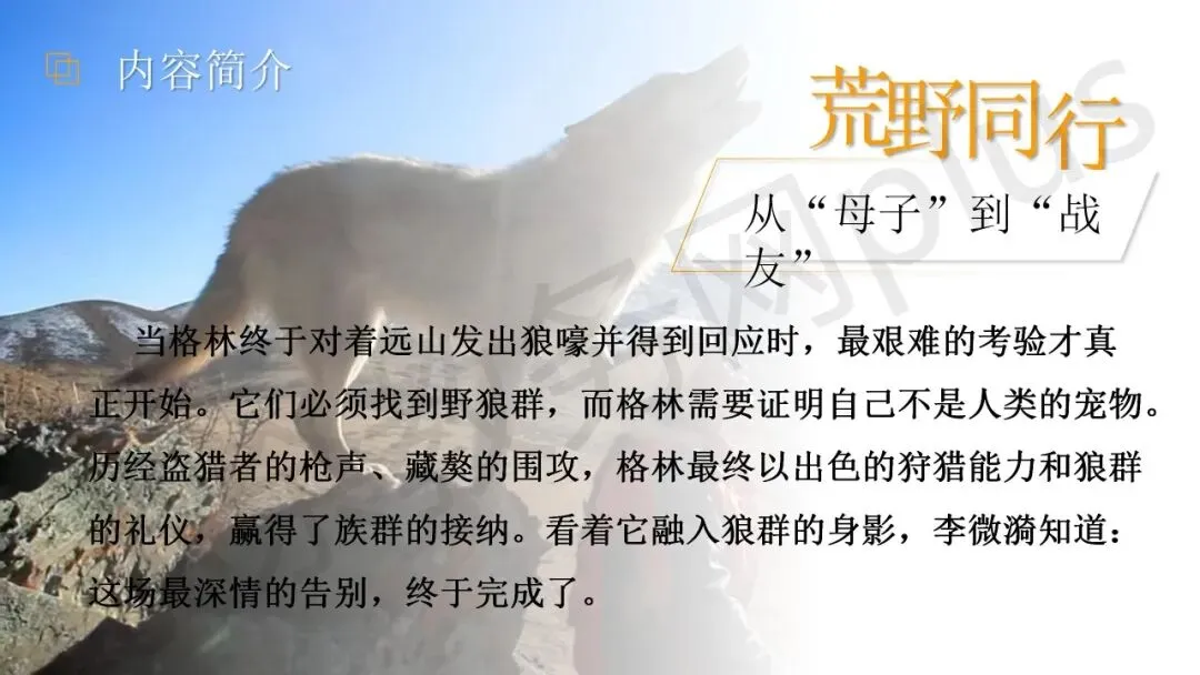 下面是这份教师读书分享 PPT 课件《重返狼群》的预览,共 17 页。