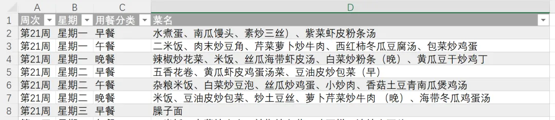 你知道他每周在干什么吗?先花大量时间手工制作那张排版精美的配餐表,再想办法把里面的数据提取出来——两件事都在耗时间,而且两件事都可以不用做。