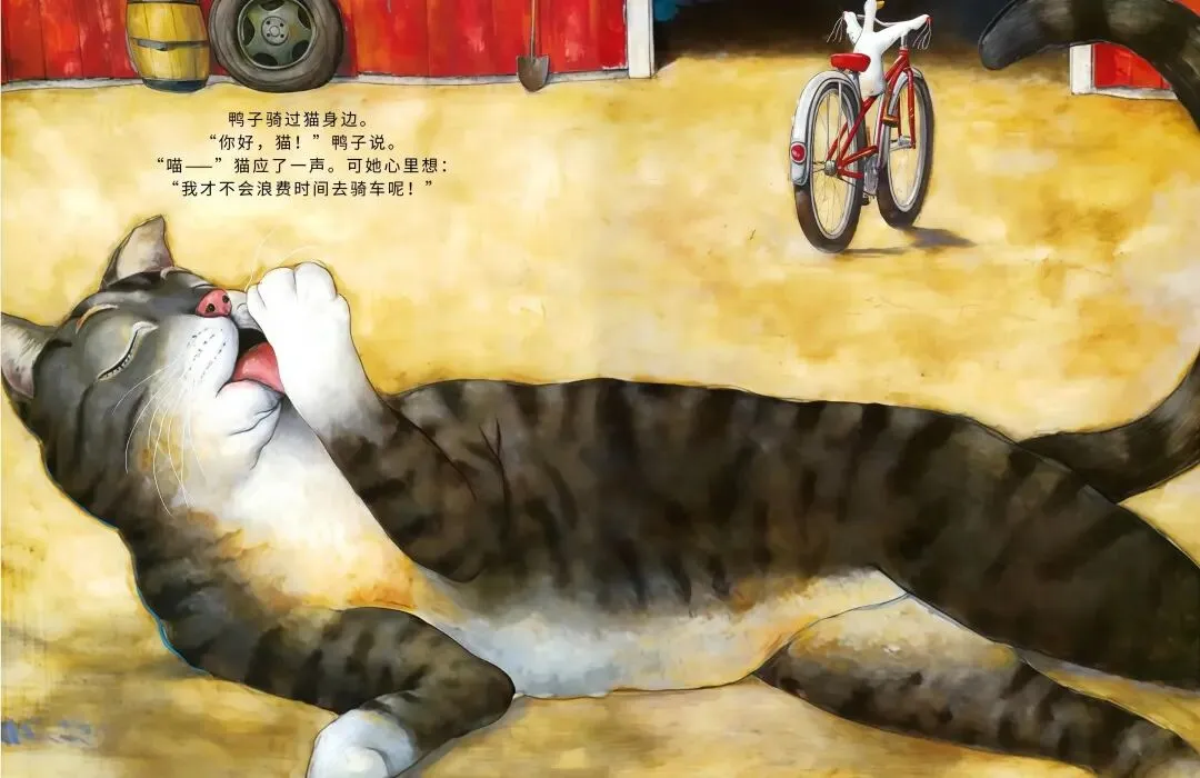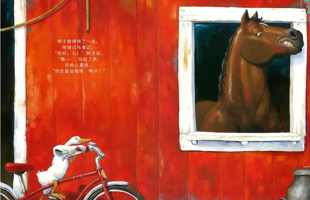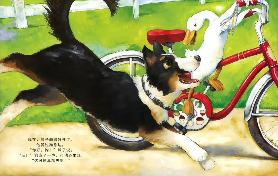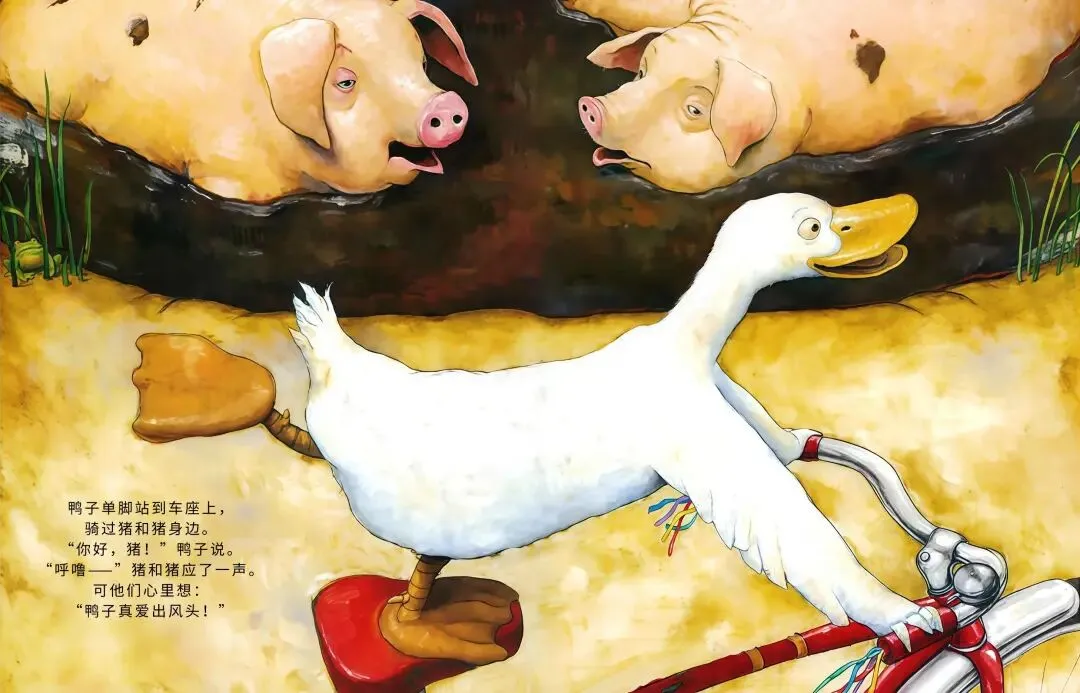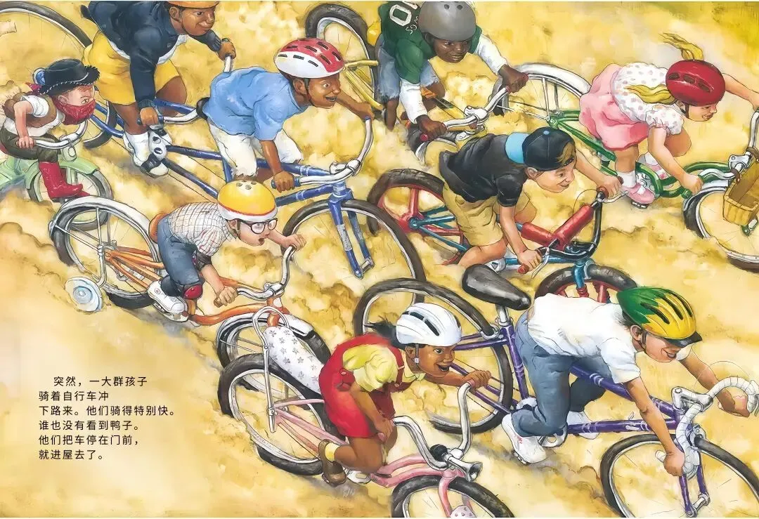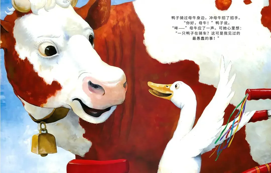 农场里的小鸭子突发奇想:我要骑车!它摇摇晃晃跨上自行车,一路和农场小伙伴们打招呼,母牛觉得愚蠢、绵羊满是担忧、猫咪不屑一顾…可鸭子不管旁人眼光,越骑越熟练,还解锁单脚骑车、撒开车把的超酷操作!最后孩子们离开后,所有动物都骑上自行车,一起感受追风的快乐,这趟勇敢尝试的旅程,超治愈~