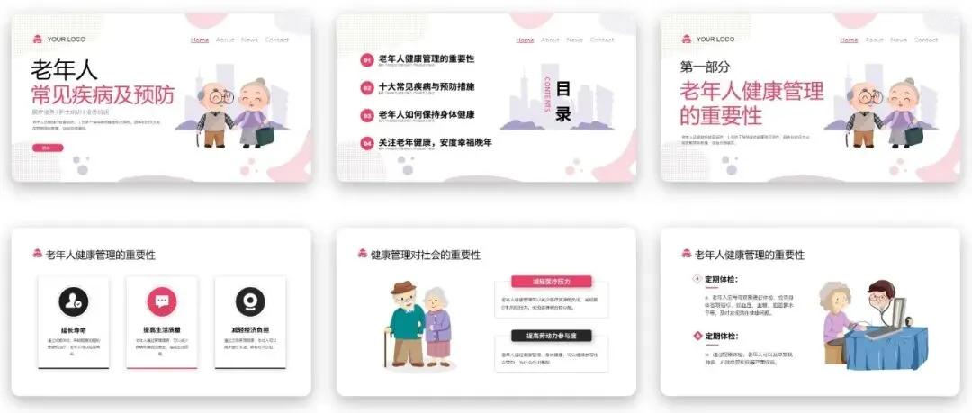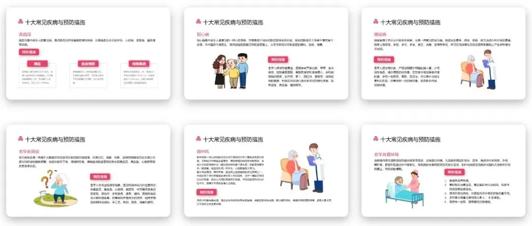 这款老年健康培训PPT,针对老年群体相关急救知识培训模块,做了系统全面的内容搭建,形成了完整的培训讲解体系,可直接适配各类相关场景。