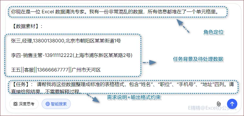 角色 + 背景 + 任务 + 约束 = 预期结果