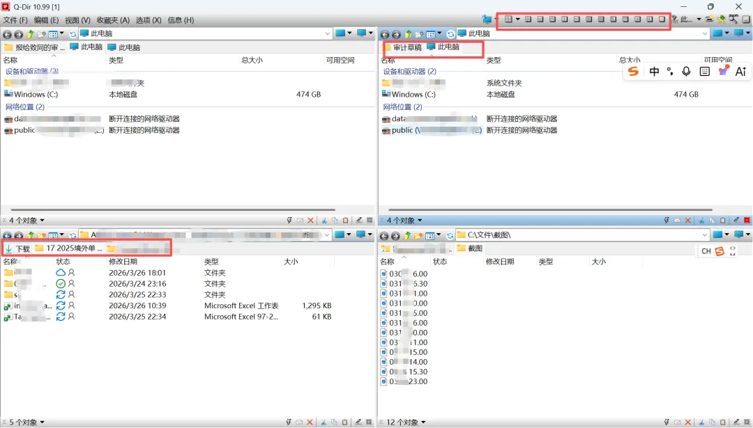 Q-Dir 是一款备受赞誉的、极度高效的Windows文件管理增强工具。它的核心设计理念是:通过多窗格界面,让你无需在不同窗口间反复切换,就能并行浏览和管理多个位置的文件夹。