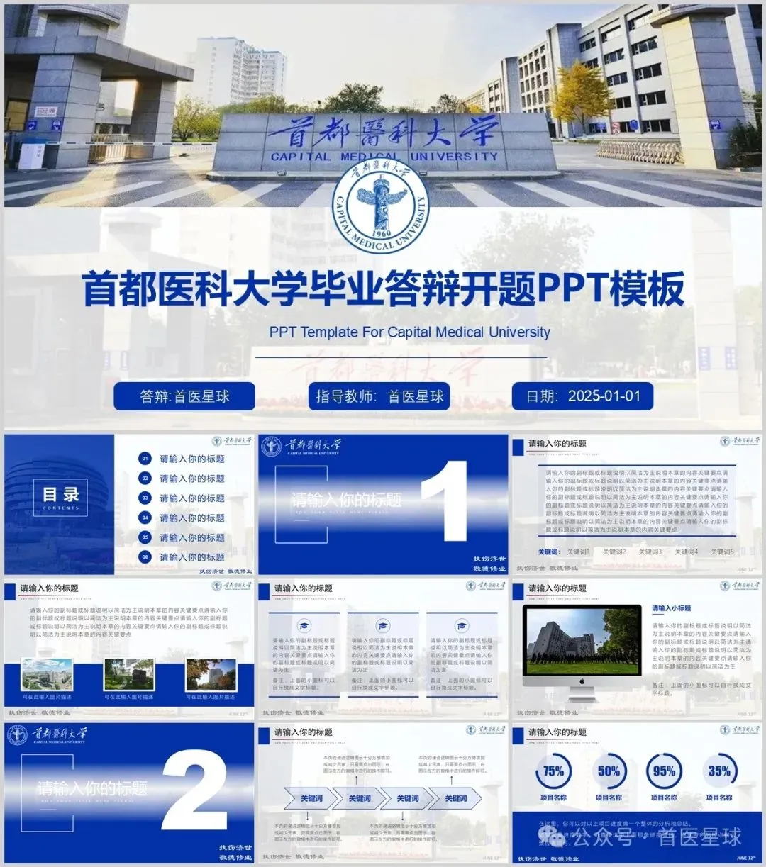 “首都医科大学”PPT模板来了~