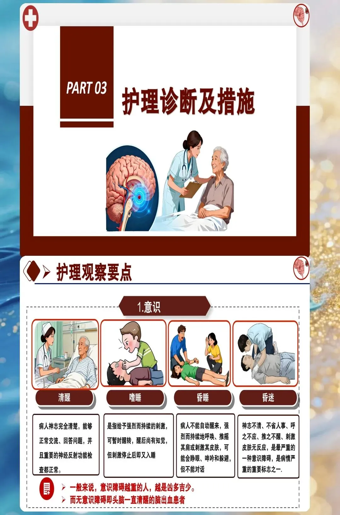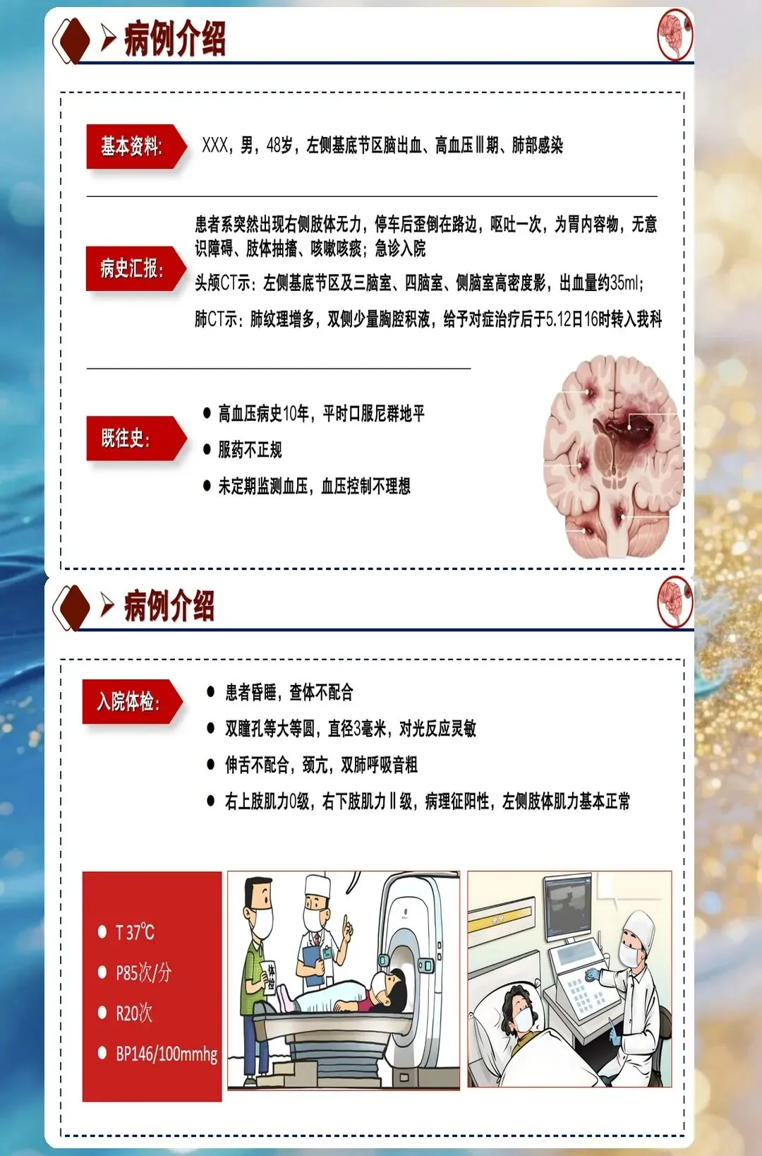 气道管理是脑出血患者护理的第一要务,也是最容易出现问题的环节。很多护士认为脑出血患者意识不清就应该插管,其实插管指征需要综合评估。这个患者入院时意识处于浅昏迷状态,GCS评分八分,呼吸频率每分钟二十八次,血氧饱和度百分之九十,护理团队通过评估认为暂时不需要插管,采用了鼻导管吸氧和气道管理措施。很多人不知道的是,气道管理的重点不是单纯维持血氧,而是要防止误吸和肺部感染。这个患者因为吞咽功能障碍,早期采用了鼻饲饮食,避免了误吸性肺炎的发生。护理人员每两小时听诊肺部一次,及时清除呼吸道分泌物,住院期间没有出现肺部并发症。