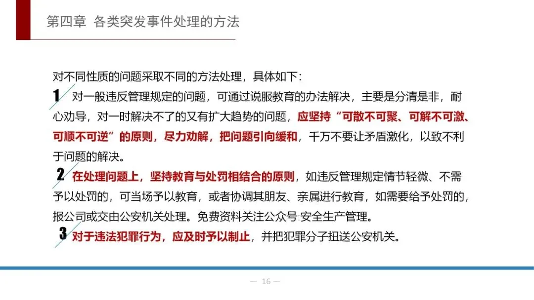 总之,突发事件应对处理需统筹预防、响应、处置和善后各环节,做到快速反应、科学处置、协同配合,才能有效降低损失,保障社会稳定。