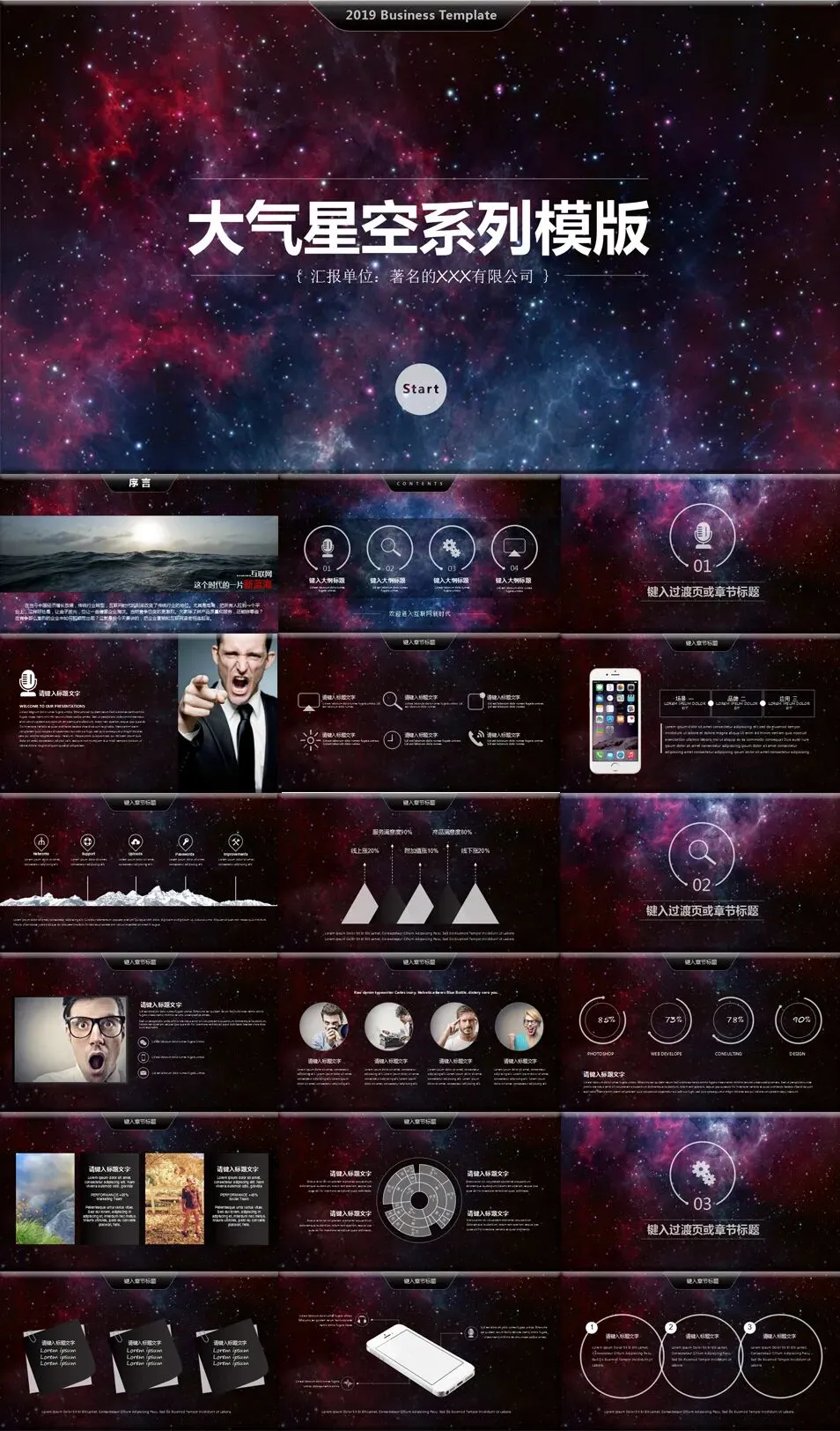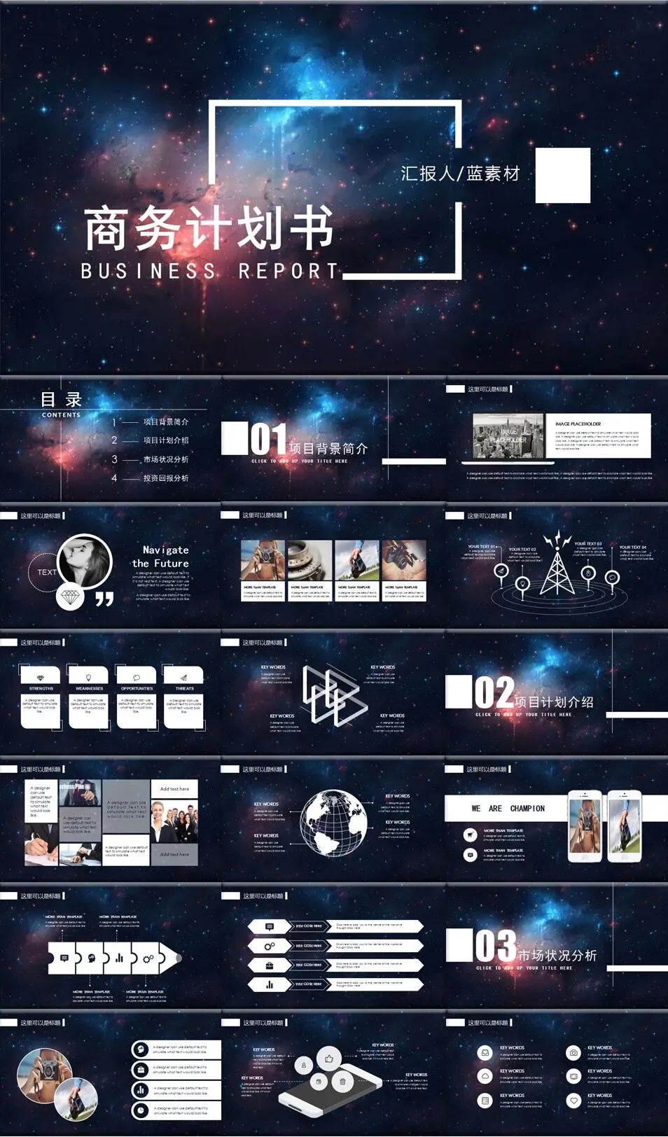 适用于天文、科技、情感、汇报等多种场景,设计精致,排版灵活,一键套用,让演示如星空般引人入胜,点亮每一场展示。