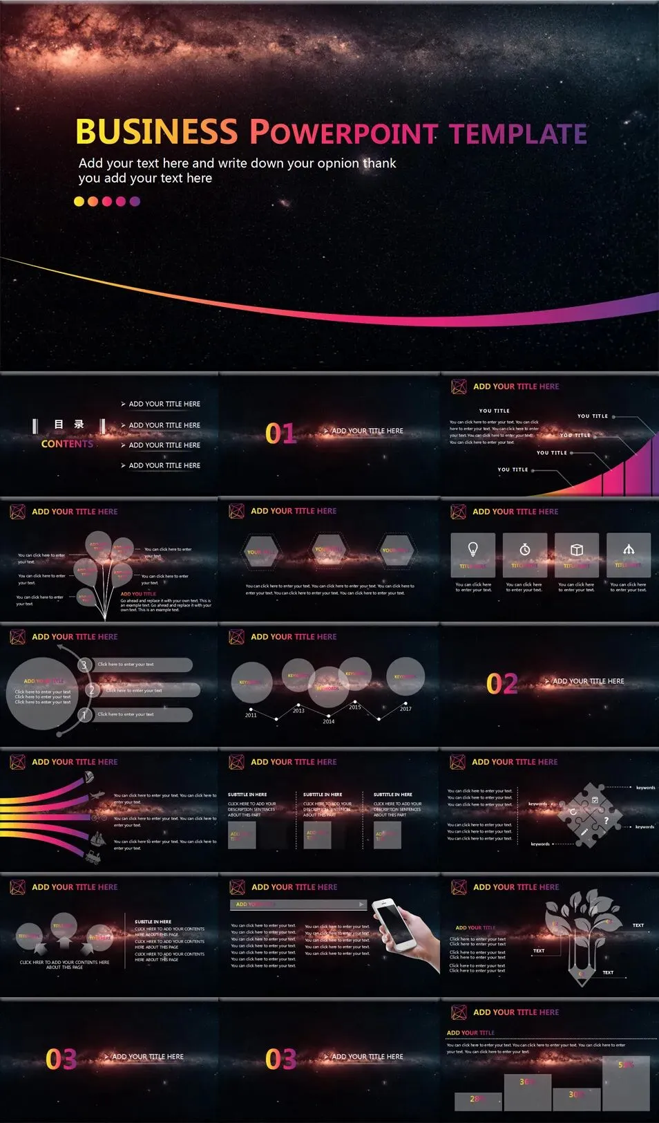 1.本文内容分享【36套星空风格PPT模板】