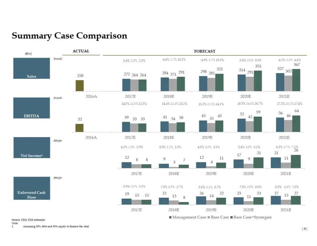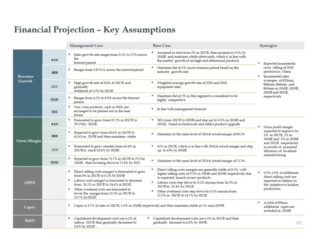 ▶️ 协同效应(Synergies):针对并购/战略整合的增量假设,量化交叉销售、本地化降本等额外收益或成本优化,并购交易中常见。
